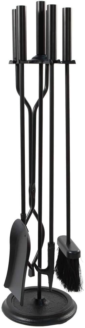 Oakestry Neoclassic 5-piece Fireplace Tool Set, Black, Round Base