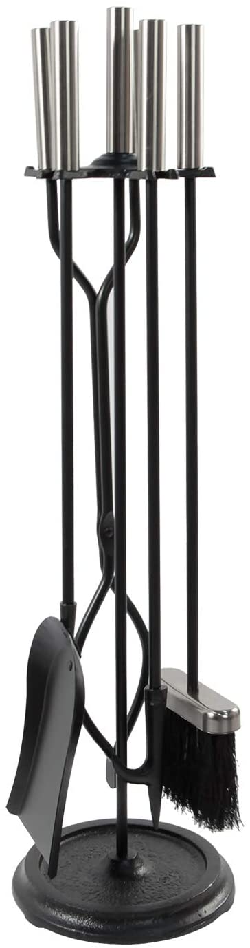 Oakestry Neoclassic 5-piece Fireplace Tool Set, Polished Chrome and Black