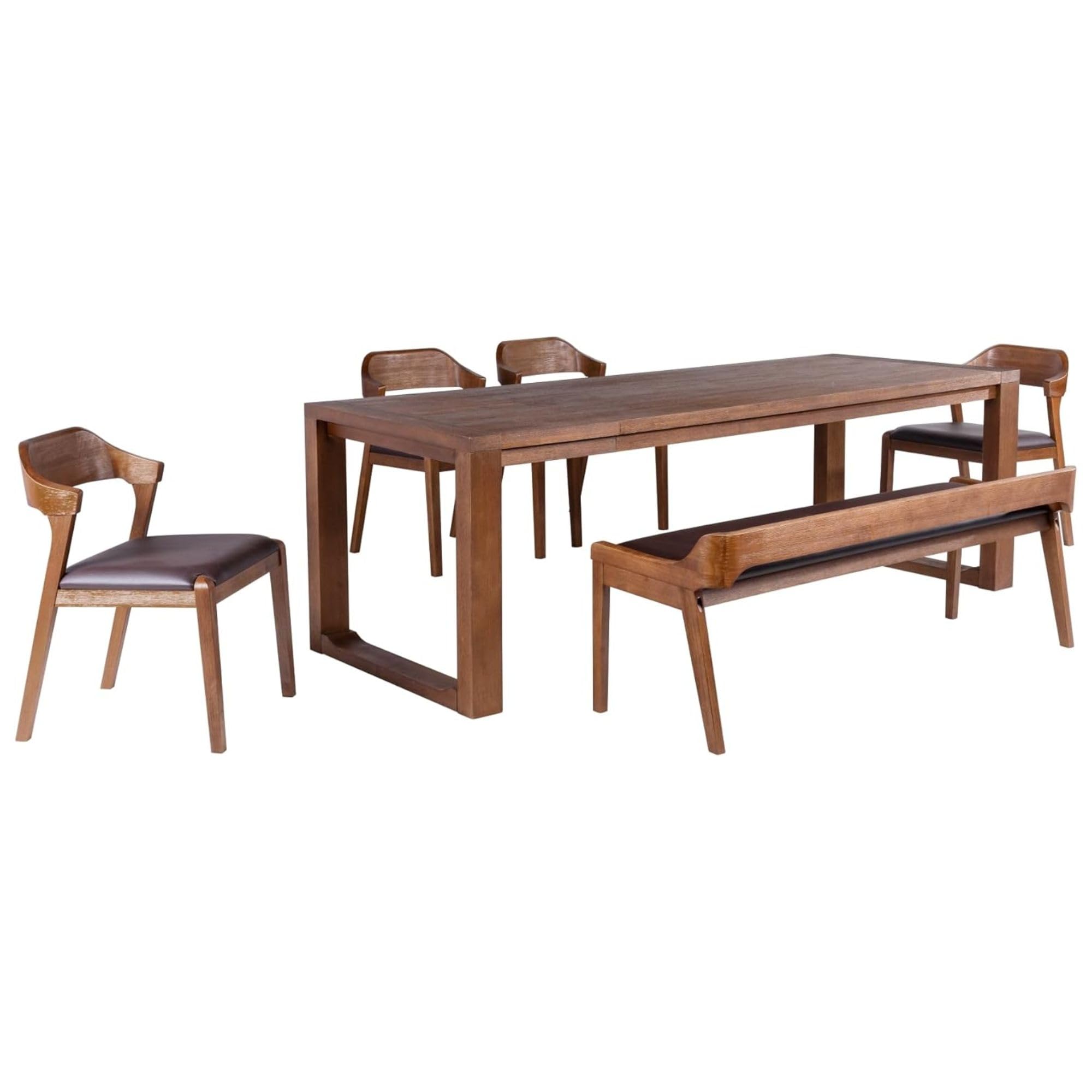 Rasmus 6pc Dining Set, Table + 1 Bench + 4 Side Chairs [Chestnut Wire-Brush]