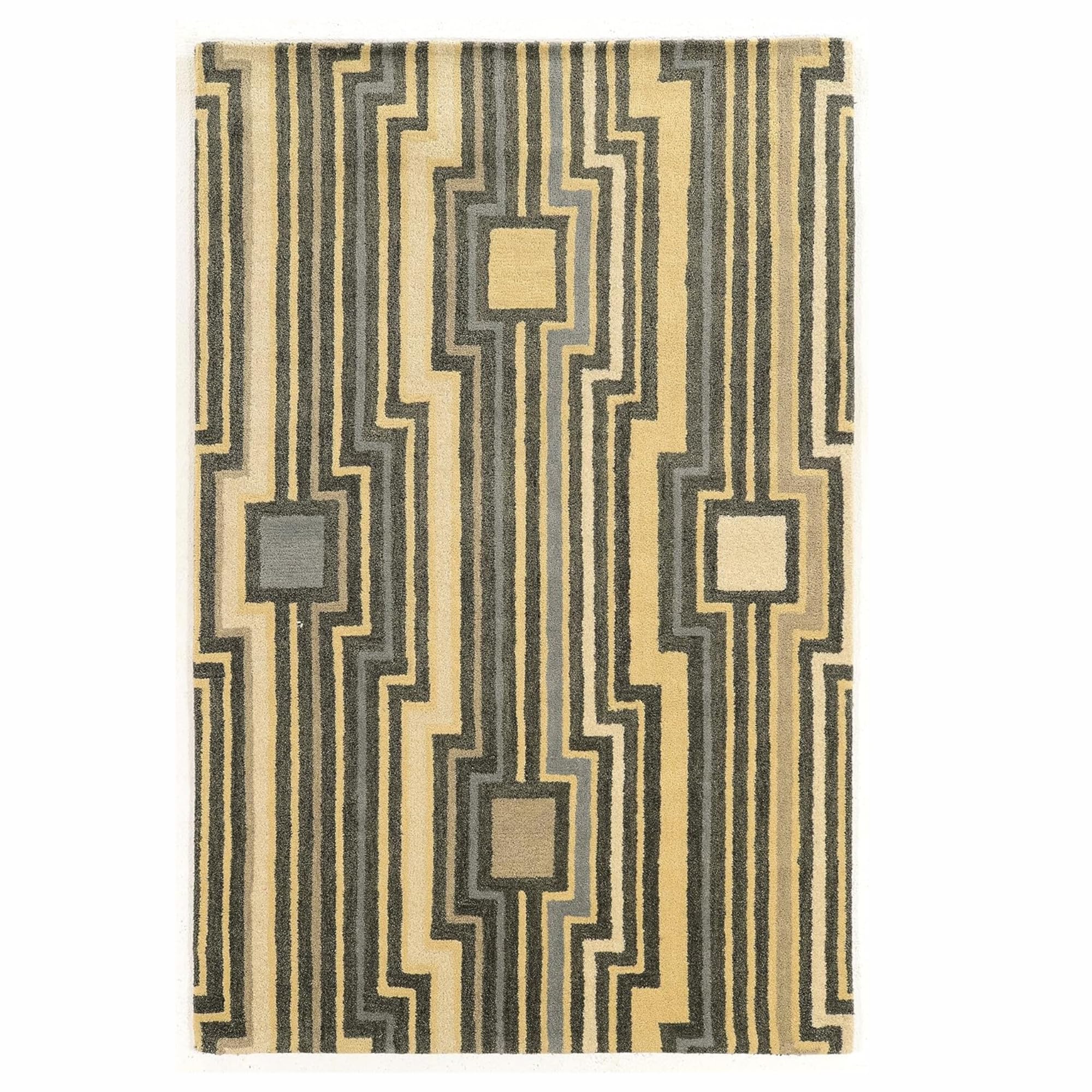 Premium Wool Construction: Hand-tufted in India from 100% new wool for a thick, plush feel that adds warmth and long-lasting durability. Transitional Linear Design: Cream base accented with grey and blue lines, enhanced with subtle faux silk highlights for added...