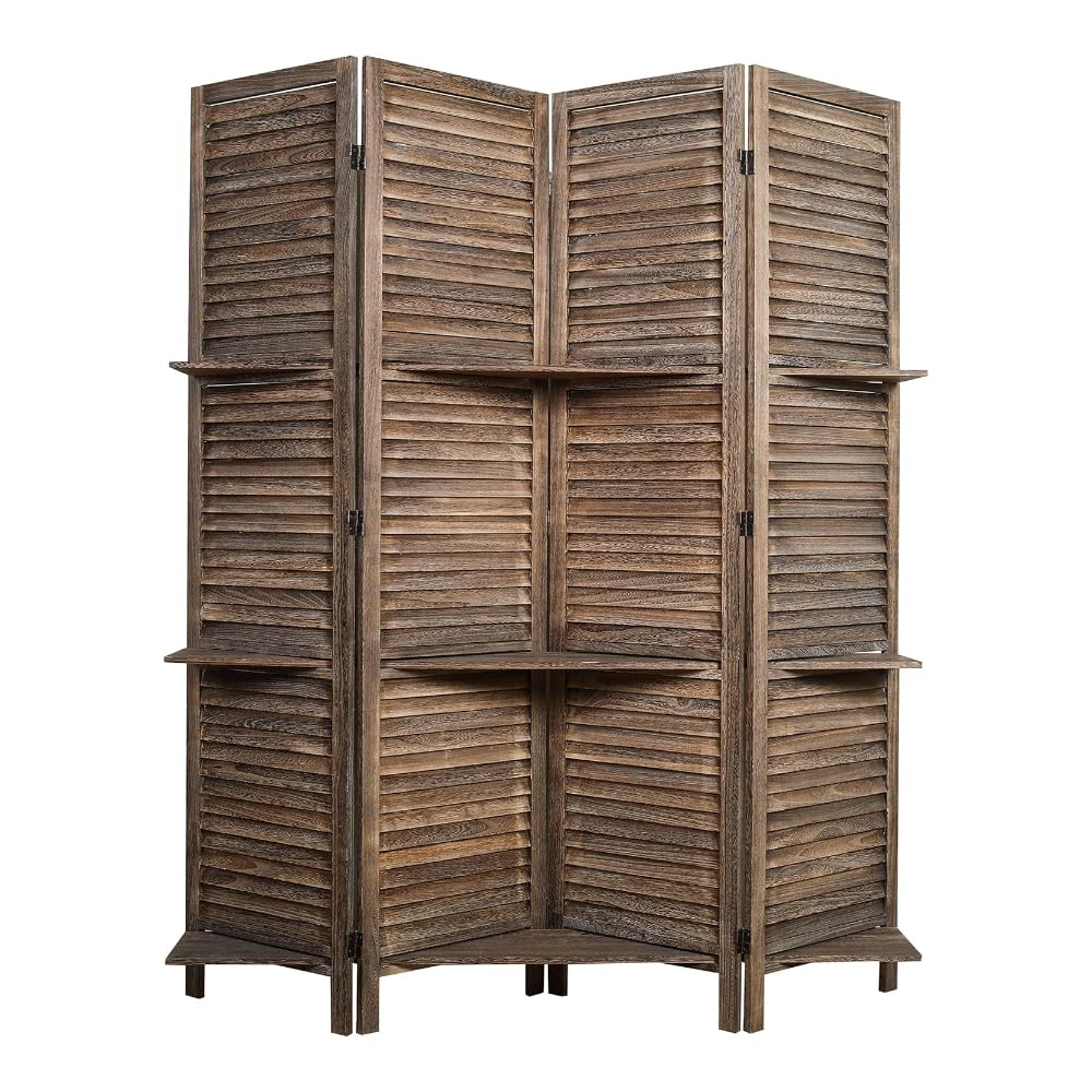 Oakestry Rancho Shelf 4-Panel Room Divider with Shelves Folding Privacy Screen Rustic Brown Wood Partition Freestanding Adjustable Space-Saving Decorative Storage Display for Home Office 47" x 67"