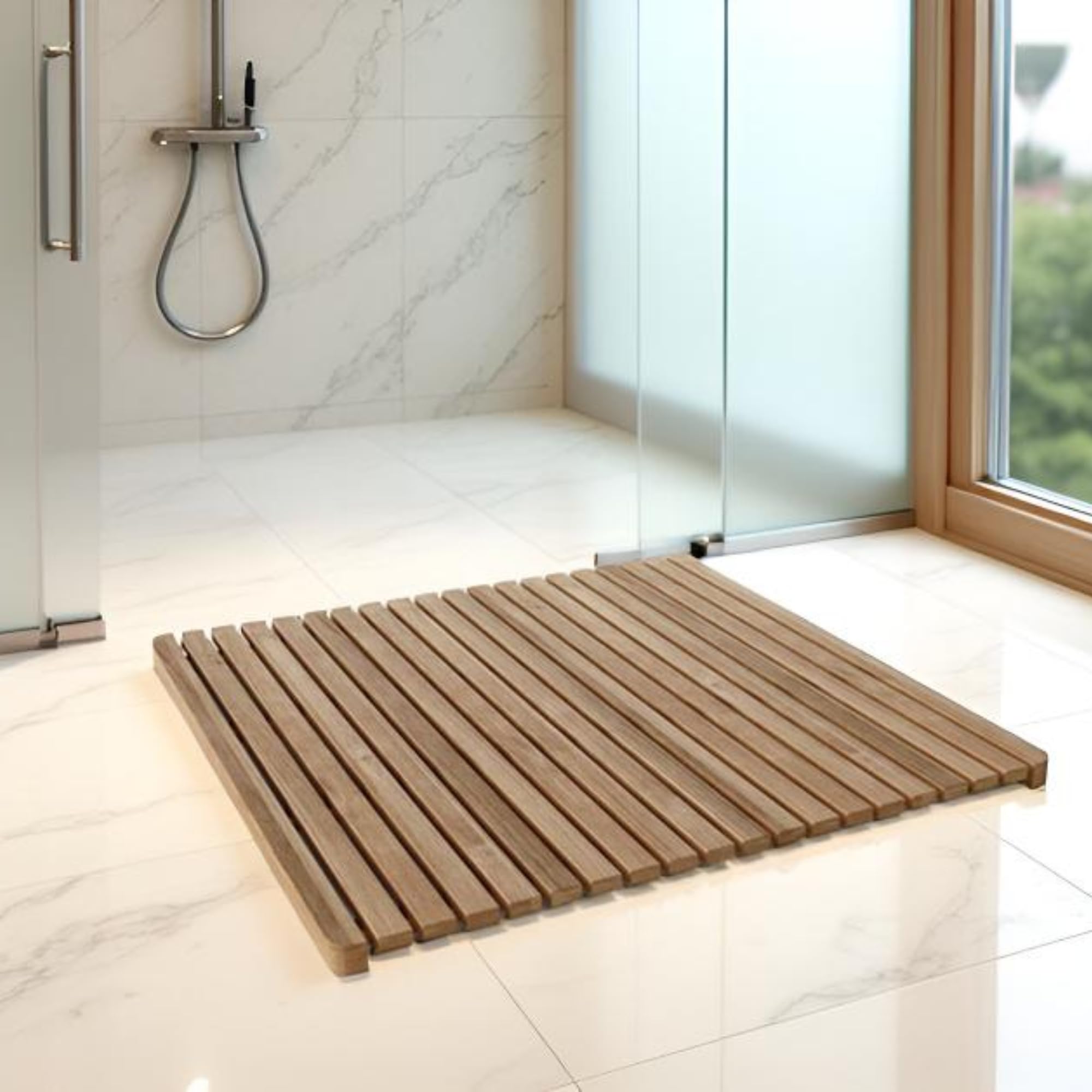 ?????? ???????????????? ???????? ??????????????: Enjoy a relaxing spa moment every day with this teak square shower mat that brings natural warmth, non slip confidence, and resort style comfort to bathrooms, walk in showers, saunas, and wellness corners while ensuring long lasting performance.