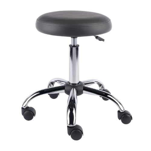 Oakestry Clyde Adjustable Swivel Stool, Charcoal Faux Leather Cushion & Chrome Base, 19.3–25.6" H, 360° Rotation with Casters, Office, Salon & Home Use