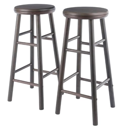 Oakestry Shelby 30.2" Swivel Bar Stool Set, 2-Piece, Oyster Gray Solid Wood, 360° Rotating Seat with Footrests, Kitchen & Home Bar Seating
