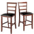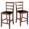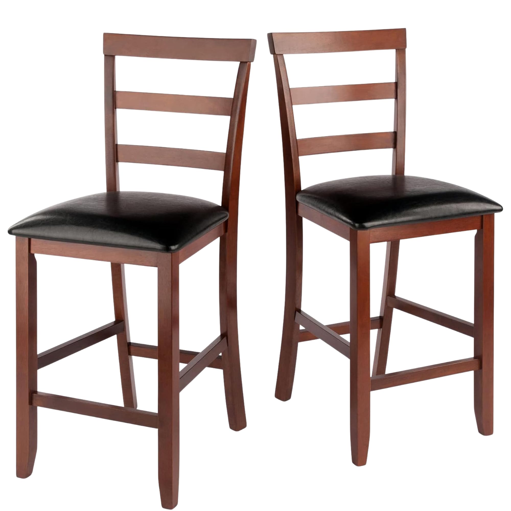 Oakestry Simone 2-Pc Ladder-Back Counter Stool Set, Black Faux Leather Cushion & Walnut Solid Wood Frame, 25" H Seat with Footrest