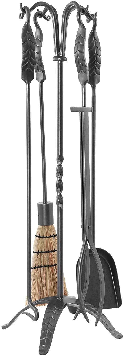 Oakestry Large Leaf 5-piece Wrought Iron Fireplace Tool Set