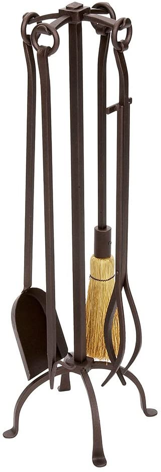 • Includes poker, shovel, tongs, natural sorghum fiber brush and stand
