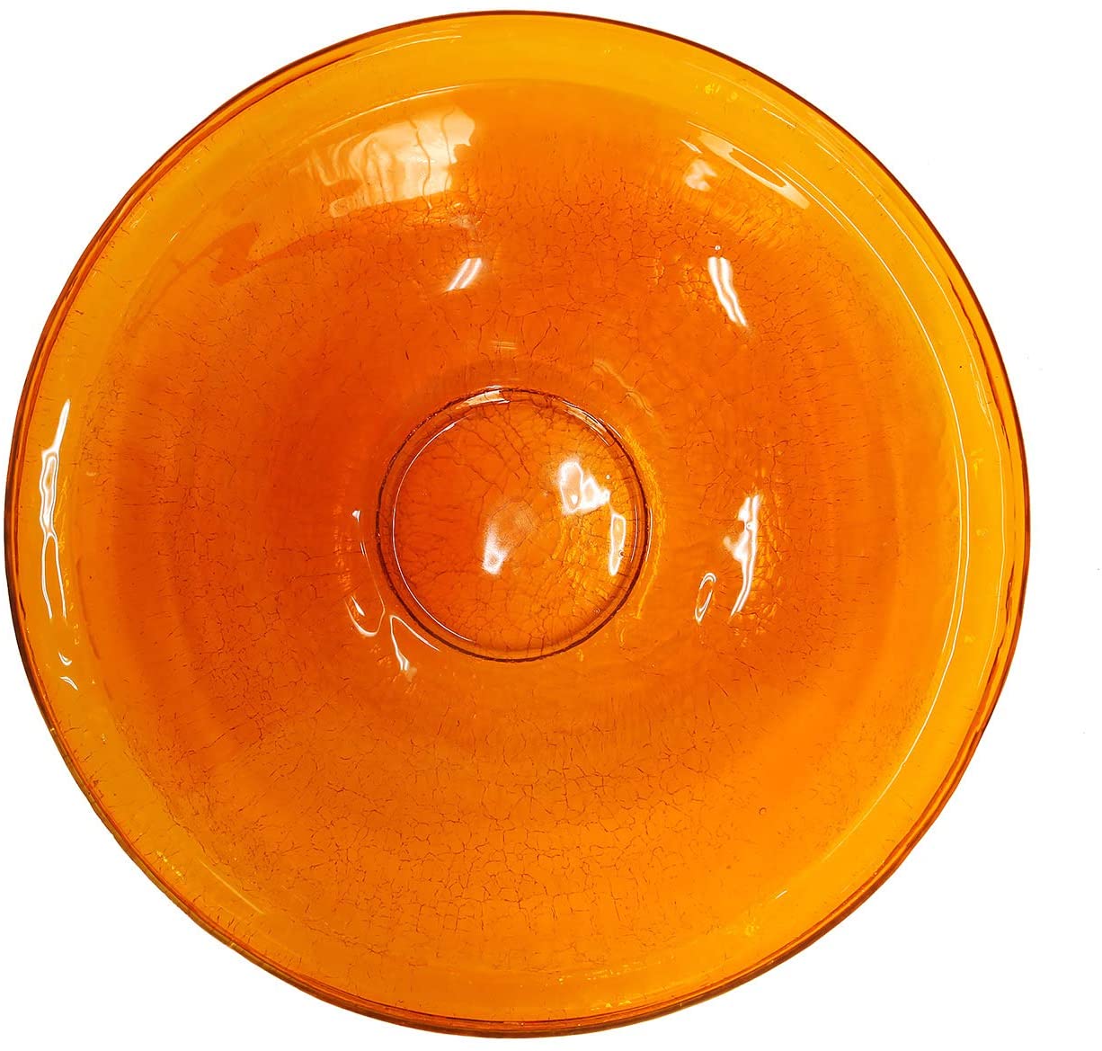 [" Make sure this fits by entering your model number."," Invite nature to your yard: looking for garden decorations and accessories to draw wildlife right to your home? Birds in the garden are looking for water to drink and splash in outdoors. The crackle glass birdbath bowl is a beautiful way to provide water in your backyard habitat year-round. This charming accessory makes a great gift for the avid gardeners, bird-watchers alike. "," Hand-blown glass: made of a brilliant Mandarin Orange hand-blown glass, not painted, with color that will not fade in the sun. Since glass bowls are handmade, some color variation can be expected. Winter protection for glass bowls is recommended. Do not allow water to freeze inside. Measures 14\" Diameter x 2 1\/2\" D "," Colorful garden decoration: reflective and brilliant, our crackled glass birdbath bowls are sparkling gems in the garden. Birds will enjoy a safe place to cool off and drink some water, and gardeners will love having this beautiful piece to accent the plantings. In five colors, These garden ornaments add a bright pop to any part of the yard. Also available with a hanging ring or garden stake for deck, porch, patio or balcony. "," Versatile glass bowl: designed for use as a birdbath, these colorful bowls are so popular, we sell them alone. Use them with our plant stands, for catering, or tabletop. Great for DIY wedding centerpieces with candles and flowers, or seasonal displays. The 14\" Bowl features a flat base. "," With our stands: This bowl fits our Oakestry wrought iron Short stand II (gbs-25) for tabletop use, or our ring stand (fb-14) for decks, patios and low plantings. "] Manufactured By : Minuteman International