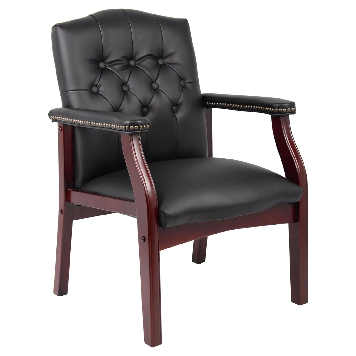 Boss Traditional Black Caressoft guest, accent or dining chair W/ Mahogany Finish