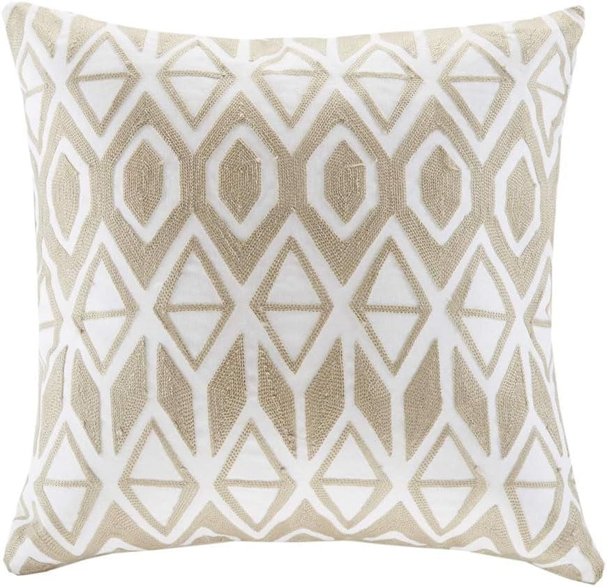 Modern Design Decorative Pillow Home Decor Hypoallergenic Sofa Standard Square 18" x 18", Anslee, Cotton Geometric Taupe
