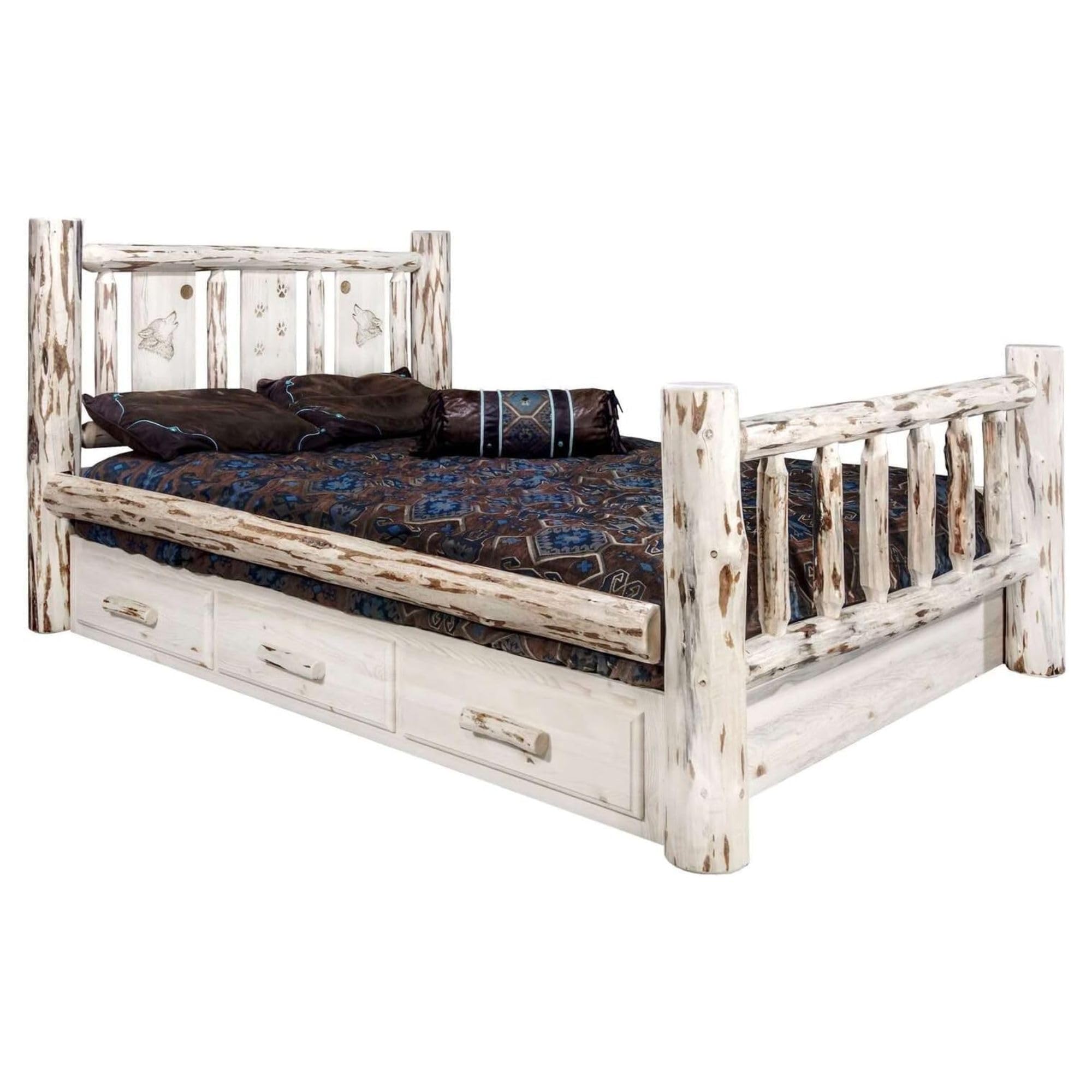 Homestead Collection California King Storage Bed w/ Laser Engraved Moose Design, Clear Lacquer Finish