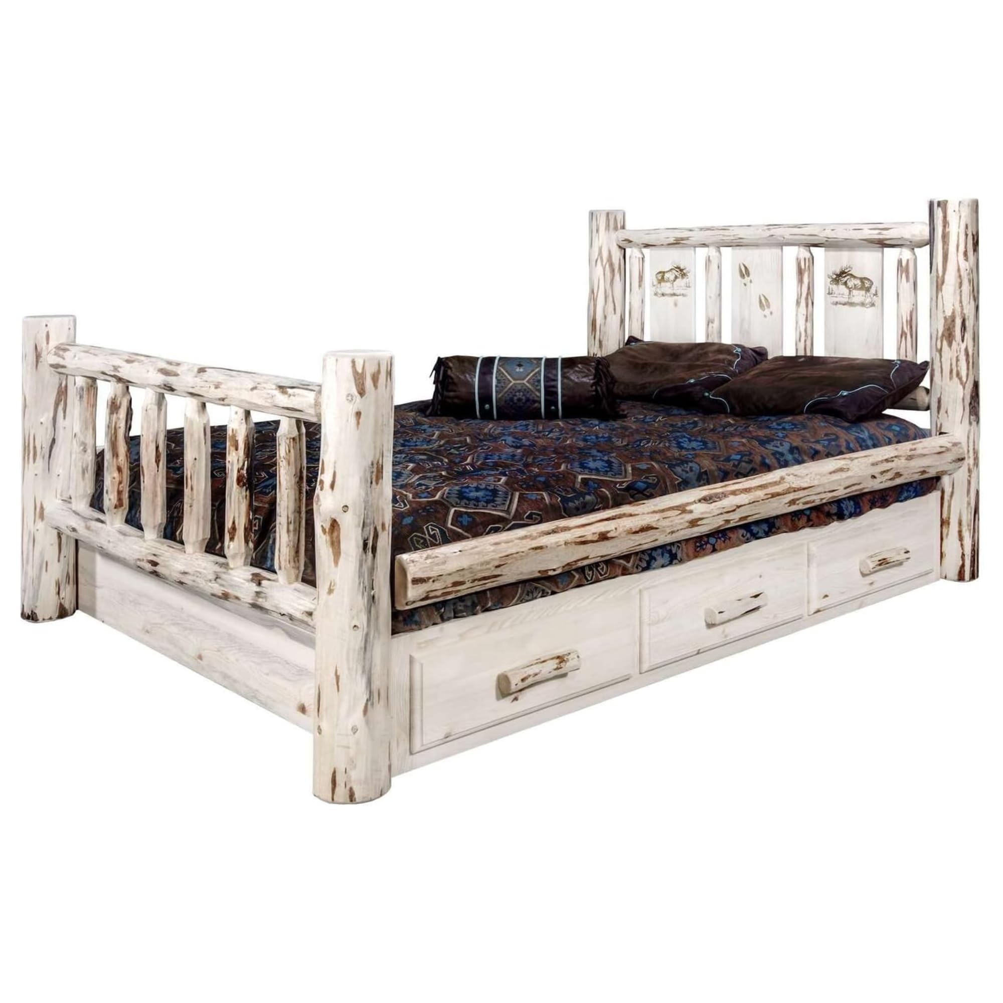 Montana Collection California King Storage Bed w/ Laser Engraved Moose Design, Ready to Finish