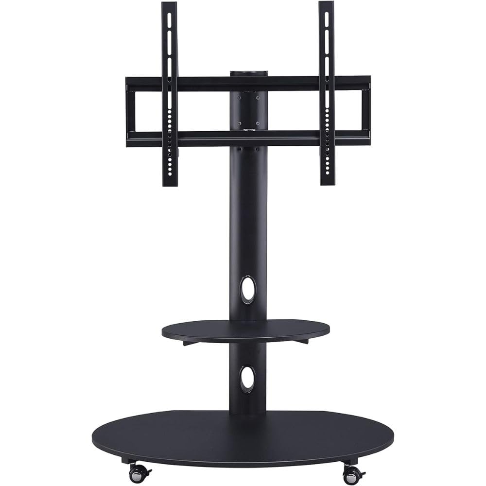? Sturdy & Stylish Modern Design – Built with a heavy-duty metal frame and a sleek black finish, this rolling TV stand is durable, stable, and complements modern, industrial, and minimalist décor.